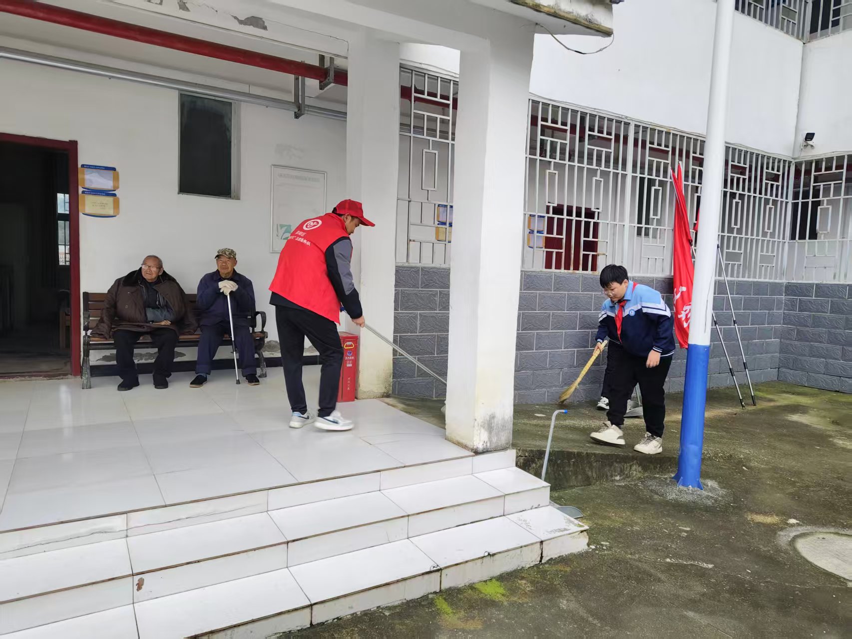 打扫卫生送洁净。刘洞镇九年一贯制学校的志愿者们分工协作,手持抹布、扫帚等工具,清扫房间、擦拭门窗、整理杂物,让福利院环境焕然一新,为老人们打造整洁舒适的居住空间。