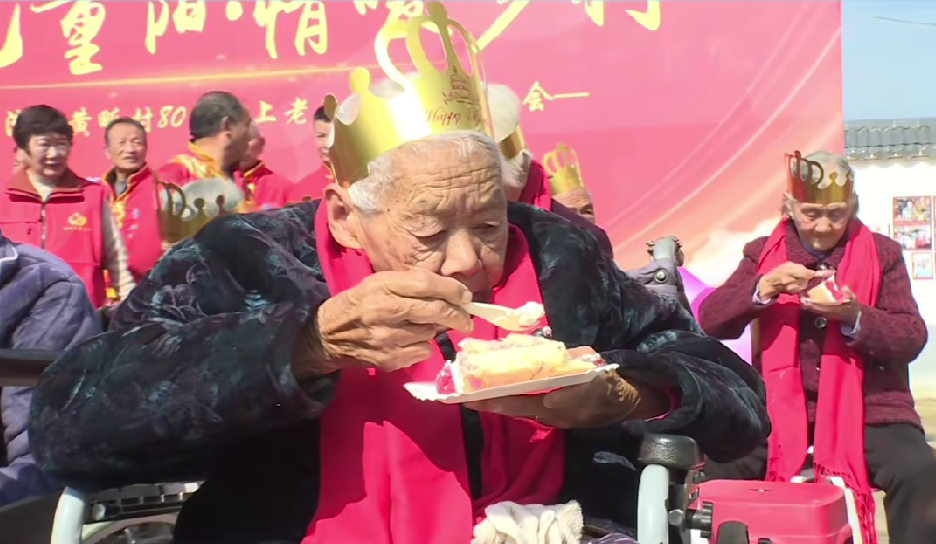 村民狄唐乐说,今年的重阳节非常开心,村里对老年人的关怀、照顾都很周全,看戏、吃饭,都很好。