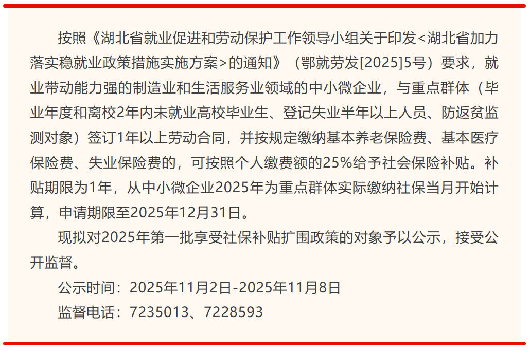名单公示!郧阳区享受社保补贴扩围政策对象公示(2025年第1批)