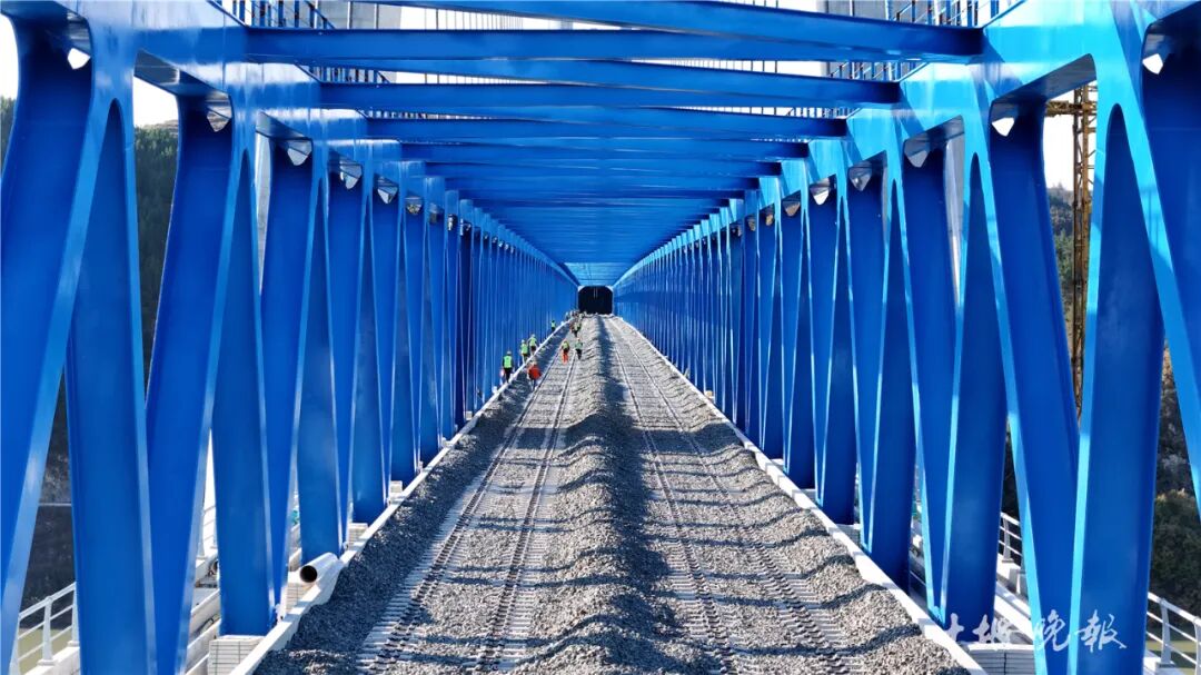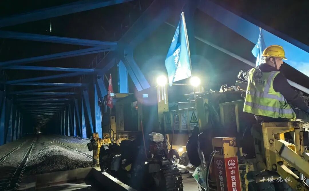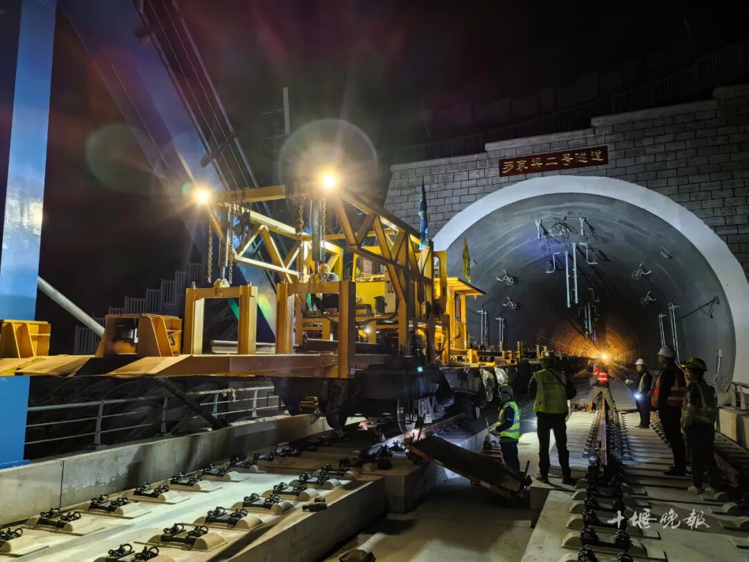西十高铁穿越秦岭山脉,地质结构复杂,桥隧比高达95%。全线(上下行)共计512公里铺轨施工任务,其中陕西段铺轨337公里,道岔55组,湖北段铺轨175公里。