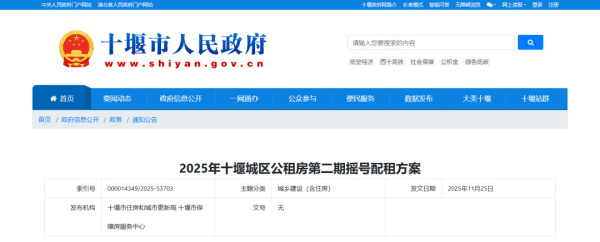 11月25日,十堰市住房和城市更新局、十堰市保障房服务中心发布《2025年十堰城区公租房第二期摇号配租方案》。