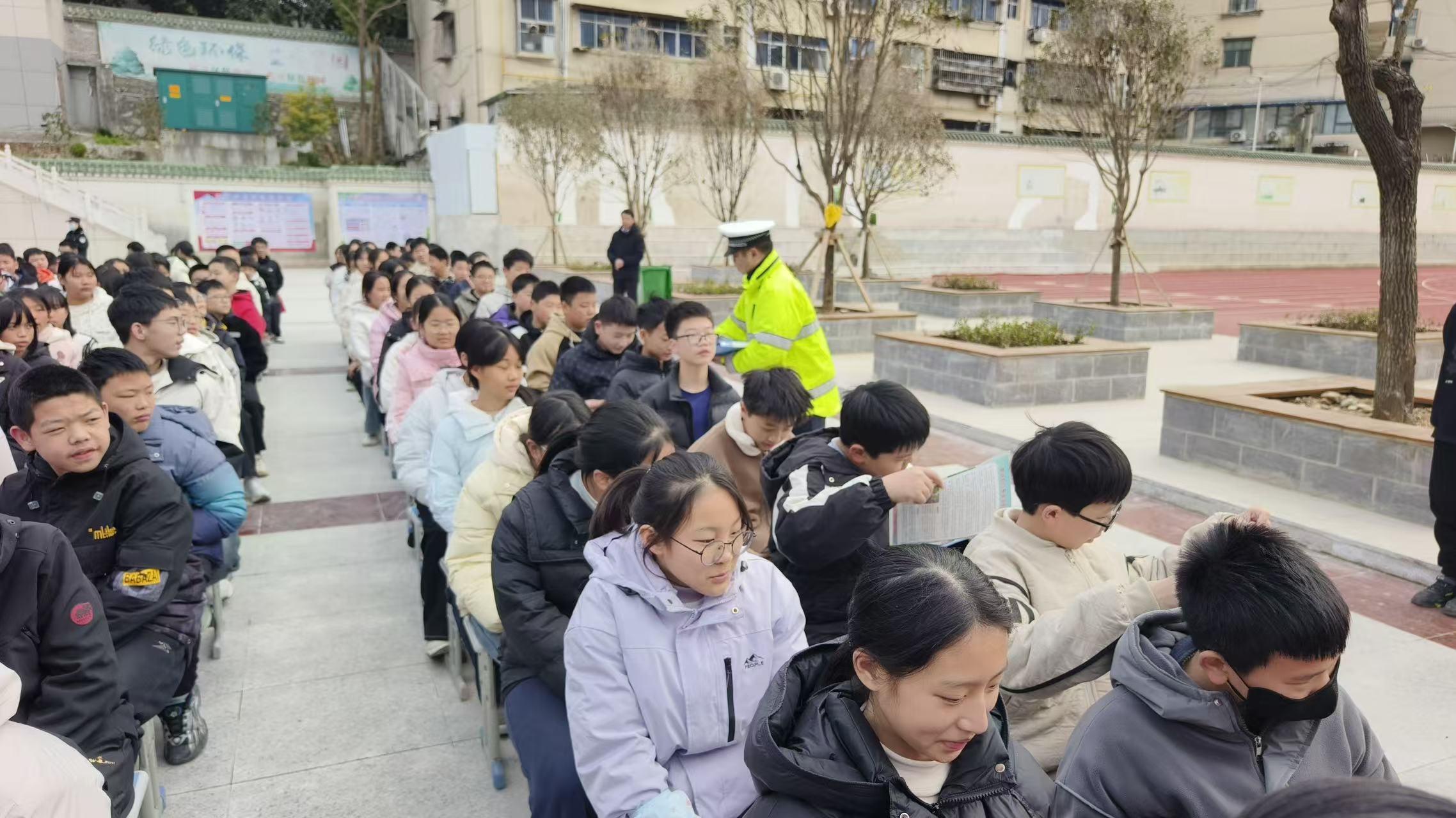 随后,郧阳区交通管理大队张警官聚焦交通安全主题,开展“安全出行,从‘头’做起”宣讲。他结合本地真实交通事故案例,详细讲解骑行电动车、自行车的安全注意事项,重点强调佩戴安全头盔在事故中的防护作用,用数据和事实让同学们深刻认识到头盔对保护生命安全的重要性。现场演示安全头盔的正确佩戴方法,纠正常见错误佩戴方式,并发放交通安全宣传册约1000份,希望同学们主动宣传交通安全知识,争做交通安全“小小宣传员”。