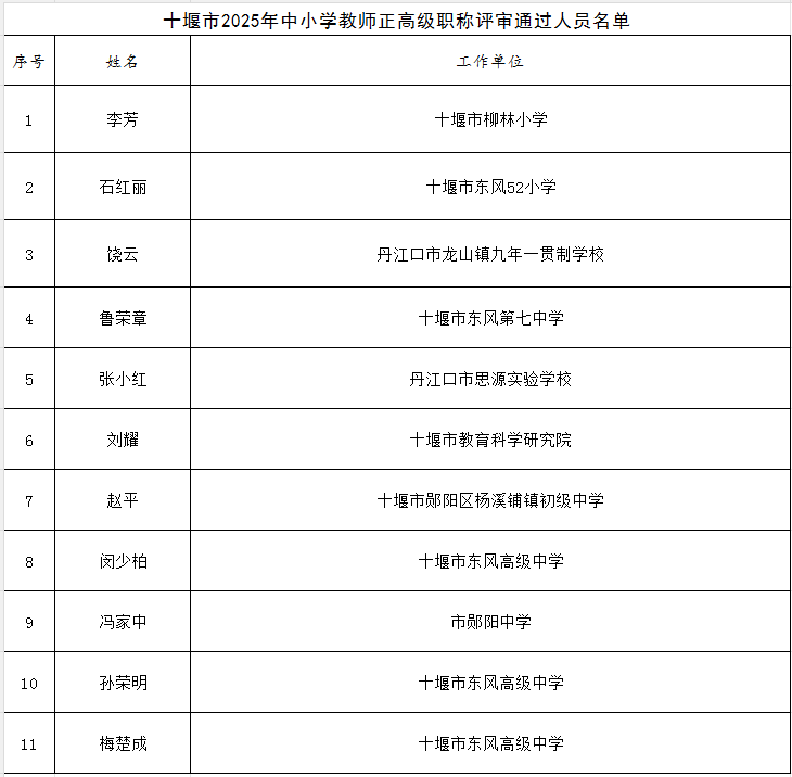 1.十堰市2025年度中小学教师正高级职称评审通过人员名单(11人)