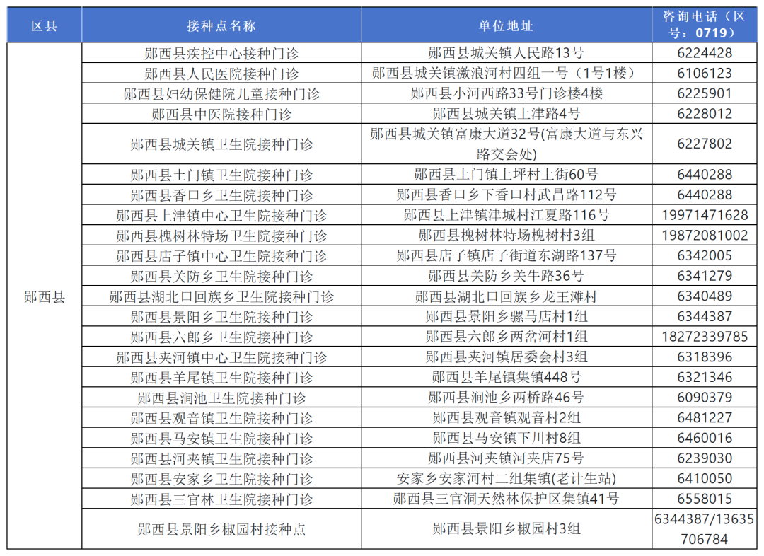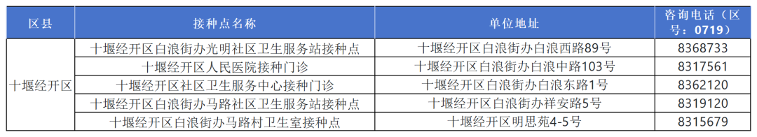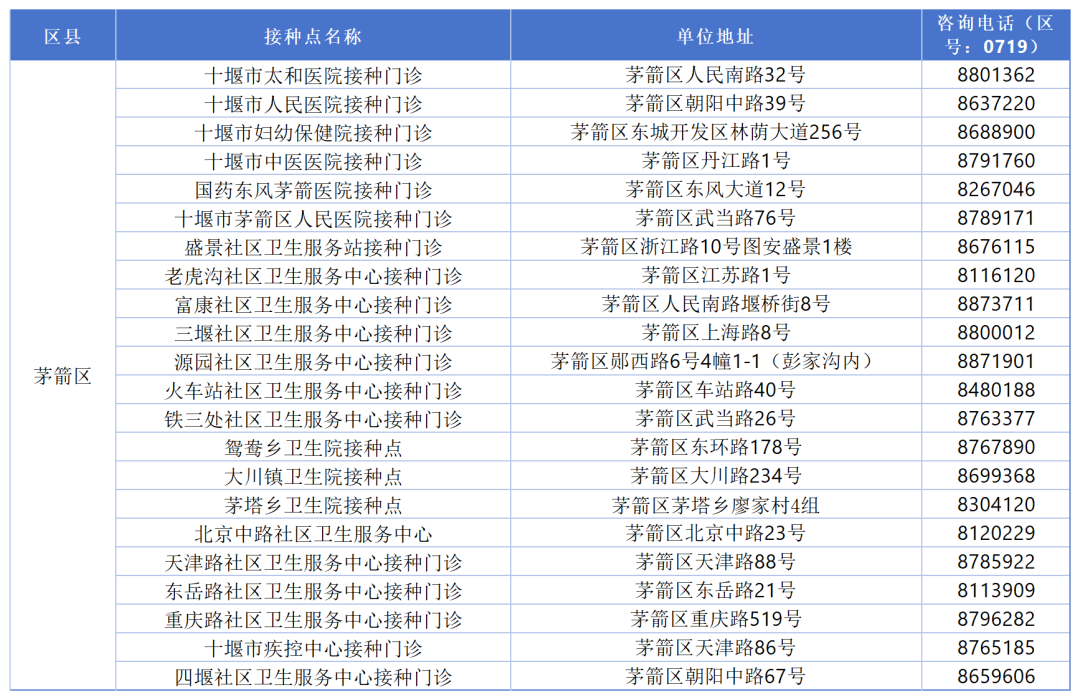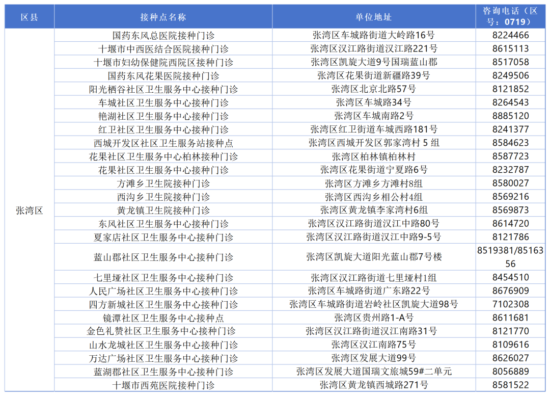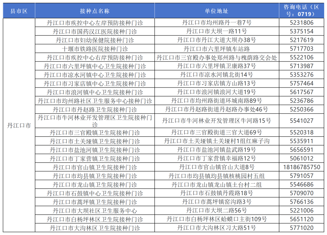 十堰最新最全疫苗接种单位名单