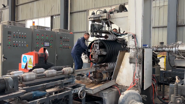 技术改造不仅提升了效率,还优化了产品性能。双壁波纹管是市政排污、排水重要管材,企业在新材料应用和结构设计上不断创新,解决了管材内壁附着等行业痛点。 公司设备部部长柳军告诉记者,以前的排污管道内壁很容易被一些青苔、泥沙附着、沉淀,提高管道内壁的光滑度之后,它的附着率跟沉淀的程度都大大地减轻了,可以有效地提高管道的通行能力。