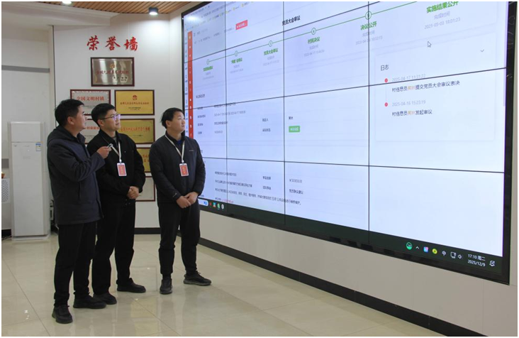 在柳陂镇龙韵村的党群服务中心,巨大的电子屏幕上,“郧阳区基层智慧治理综合信息监管平台”正在实时运行。平台集成了线上议事、“三资”监管、民生资金发放、工程项目管理、预警分析等多个模块。工作人员轻点鼠标,全村“四议两公开”的线上流程进度、每一笔集体资金的收支明细、每一项资产资源的变动情况、每一分惠民补贴的发放记录都清晰可见,实现了村级事务“一屏统览、一键可查”。