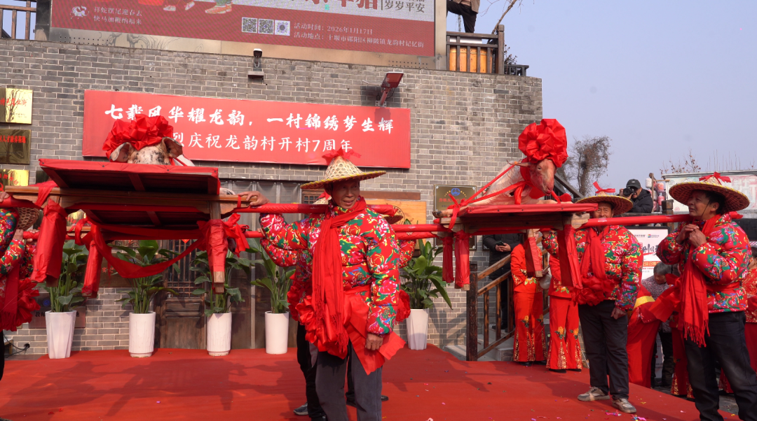 1月17日,柳陂镇龙韵村举行“乐在湖北 '马’上有喜”2026年迎新春敬老宴暨开村七周年庆典活动,全村60岁以上老人与游客欢聚一堂,赏民俗,话桑麻,品年味,热热闹闹迎新年。区政协主席党永生,区委常委、统战部部长雷涛参加活动。