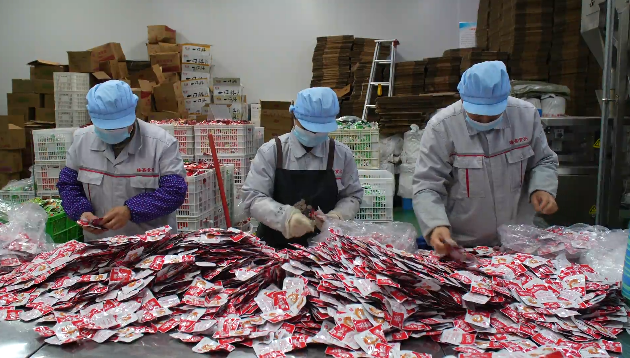 1月22日,记者走进湖北臻嘉食品有限公司,空气中弥漫着魔芋食材特有的清香。生产车间内自动化生产线高速运转,工人们正熟练地进行检测、封装和装箱作业,一箱箱封装完毕的魔芋素食产品正码放整齐等待发运。公司厂长周贤道介绍,以往公司的营业额60%-70%来自线上,今年公司配备了专业的销售团队,线上线下齐发力。