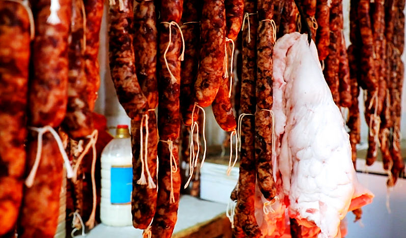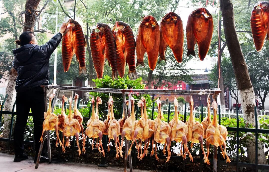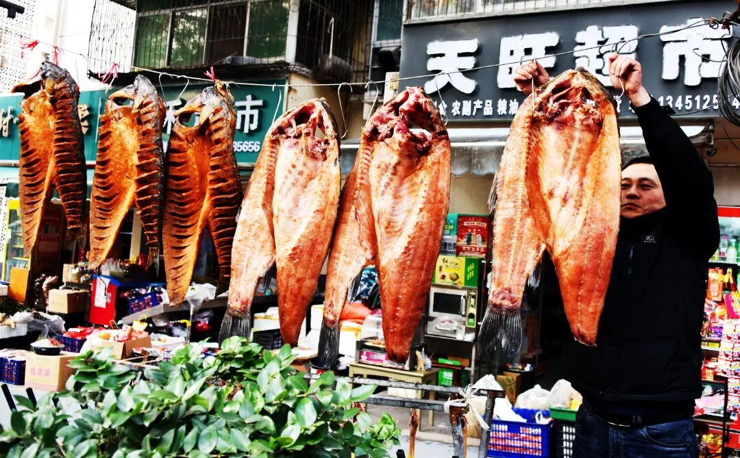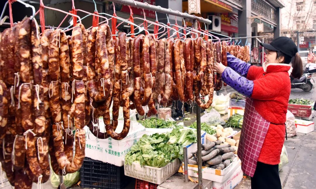 一串串腊肉、腊肠、腊鱼整齐悬挂