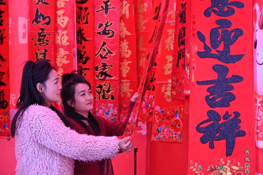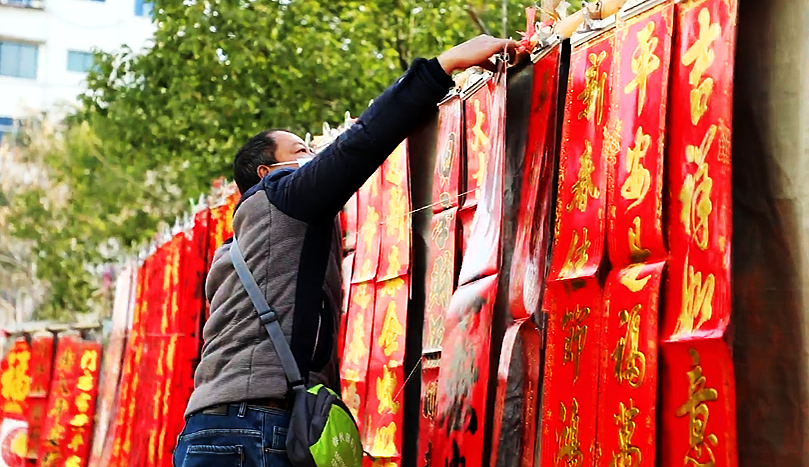 红彤彤的春联挂满了摊位
