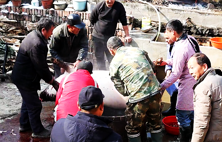 一桌热气腾腾的杀猪宴准时开席