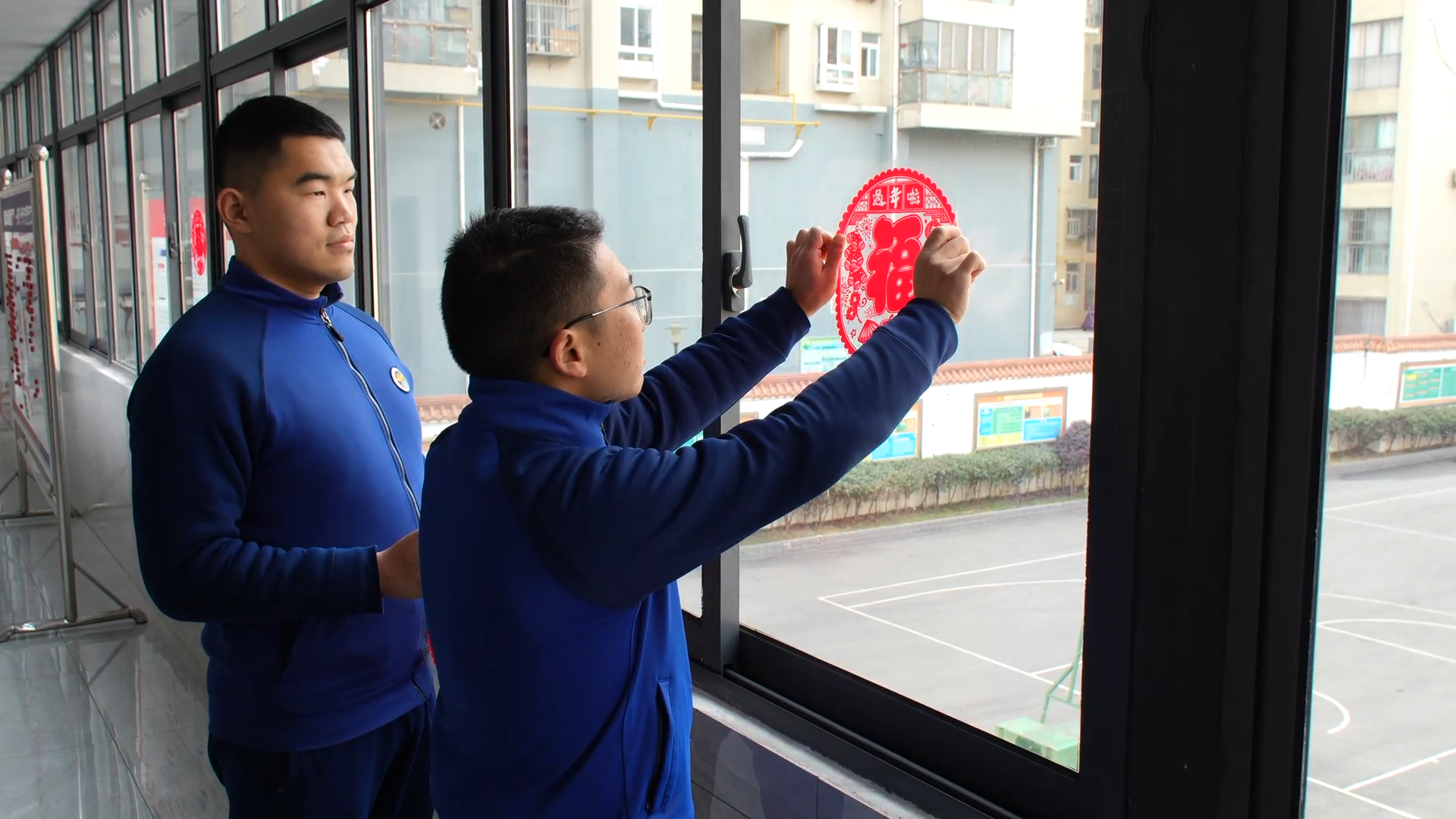 2月16日,农历除夕。在郧阳区沿江路消防救援站内,大红灯笼高高挂起,喜庆的窗花贴满玻璃,平日里严肃整洁的营区,此刻充满了浓浓的年味。