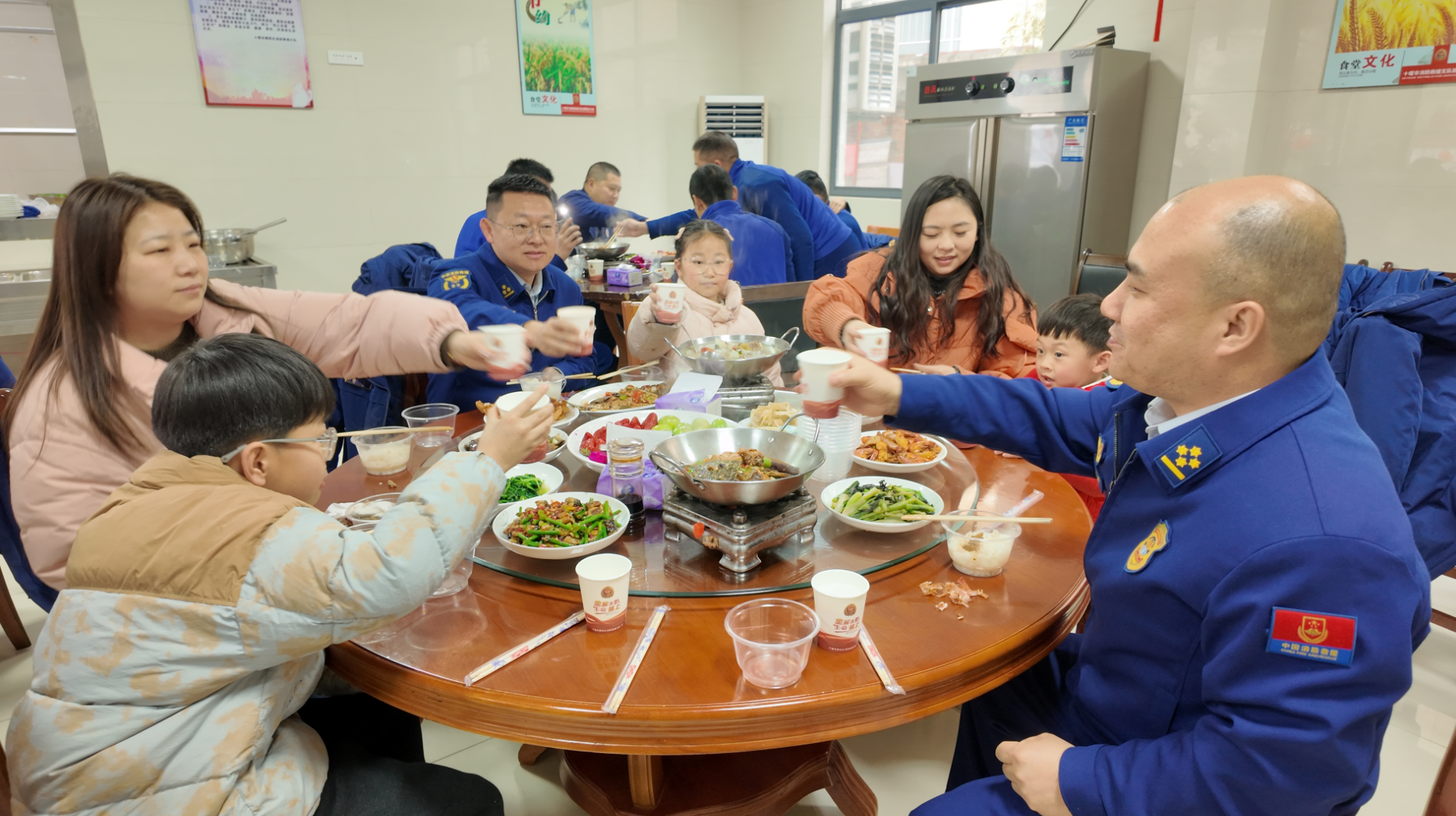 中午时分,一场特殊的“团圆饭”在营区食堂热闹开场。为了让坚守在岗的队员们感受到家的温暖,队里早早安排了“厨师班”大显身手,更邀请不少来队探亲的家属一起团聚。大家围在一起,畅谈一年的收获,互致新年的祝福。