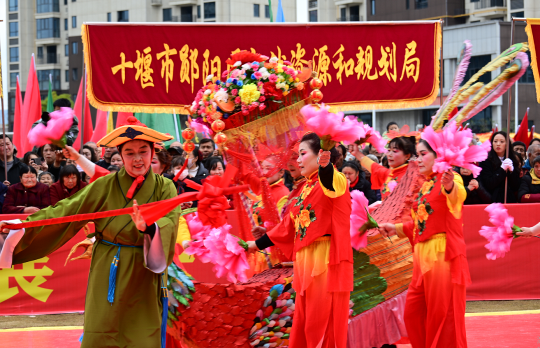花灯展演结束后,秧歌巡演启幕,各单位代表队依次登场,展现奋进姿态。区农业农村局秧歌队彰显深耕沃土、推动乡村振兴的决心;区市场监管局秧歌队展现守护市场秩序、助力绿色发展的担当。区检察院代表队步履铿锵,融入忠诚履职、司法为民的担当;区财政局秧歌队坚守为民理财初心,送上美好祝福。区交通运输局代表队展现交通事业发展成果与奋进姿态;市生态环境局郧阳分局秧歌队诠释守护生态、防治污染的担当。自然资源和规划局代表队展现守护绿水青山的承诺。城关镇先后带来《中华全家福》《辉煌中国梦》,舞出团结幸福与美好向往。区人民医院与中医院秧歌队,将医者仁心融入欢腾舞步,守护群众健康;十堰高新区实验学校、实验中学、新区小学、郧阳科技学校的队伍,尽显教育工作者与学子的青春风采。民政局《锦扇罗伞缔良缘》年味十足,区水利和湖泊局、税务局、发改局、杨溪铺镇的秧歌队依次登场,各展风采、共送祝福。