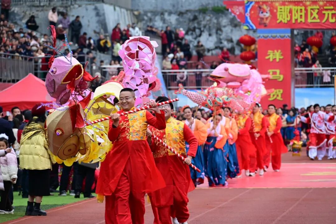 骏马奔腾迎盛世,奋勇争先启新程。3月2日下午,“跃马先行区同心谱新篇”2026年郧阳区元宵节民俗花灯展演巡游活动举行。千余名干部职工、32支花灯和秧歌汇演队伍陆续展演,盛装巡游,吸引万余名群众现场观看。区政协主席党永生,区领导卢金华、何珊、罗春竹及郧阳好人、道德模范代表等现场观看演出。