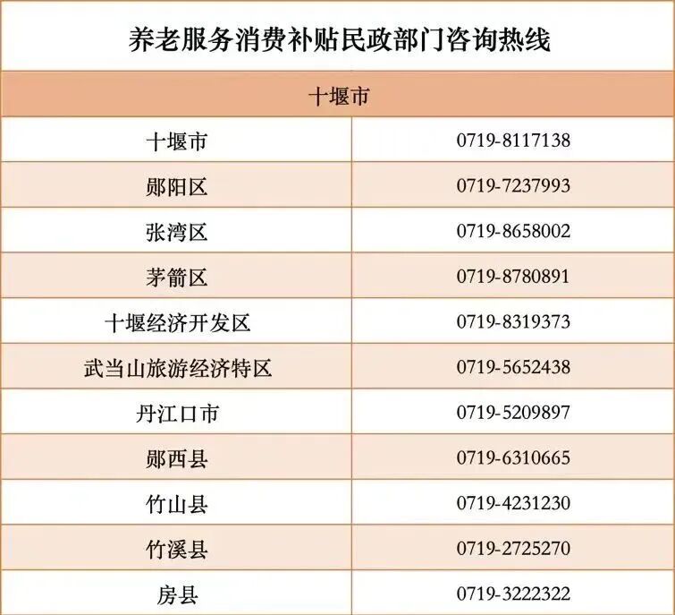 十堰市养老服务消费补贴民政部门咨询热线