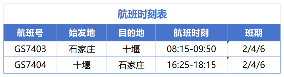 新开通石家庄—十堰往返航班