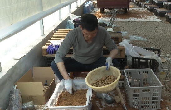 日前,记者走进郧阳区谭家湾镇设施天麻栽培示范基地,现代化种植大棚整齐排列,棚内温暖湿润、环境可控。技术人员李润学熟练操作,铺料、放菌、栽麻、覆土,一筐筐刚刚移栽完成的天麻种整齐摆放,孕育着丰收的希望。技术人员李润学介绍,用了50个水果筐,第二个要用到无纺布,方便通风透气;第三个要用到的是密环菌,密环菌是保证它的产量;第四个要用到的是麻种,我们建议用零代麻种,保证它的成活率以及抗性比较强。