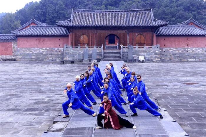 柯文带着“洋弟子”在遇真宫练习太极。摄影/彭涛
