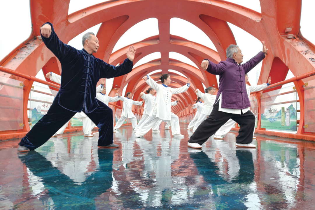 3月15日,丹江口市太极拳爱好者一起习练太极拳,以饱满热情迎接3月21日首个“国际太极拳日”的到来。摄影/张建波