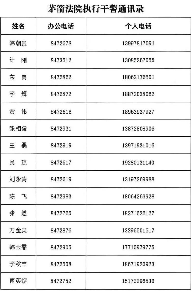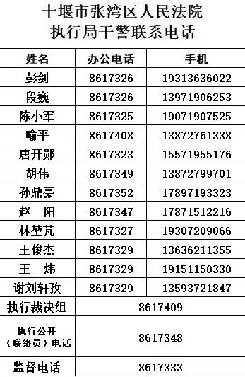 无故不接听可举报十堰中院公布执行办案人员电话号码,无故不接听可举报