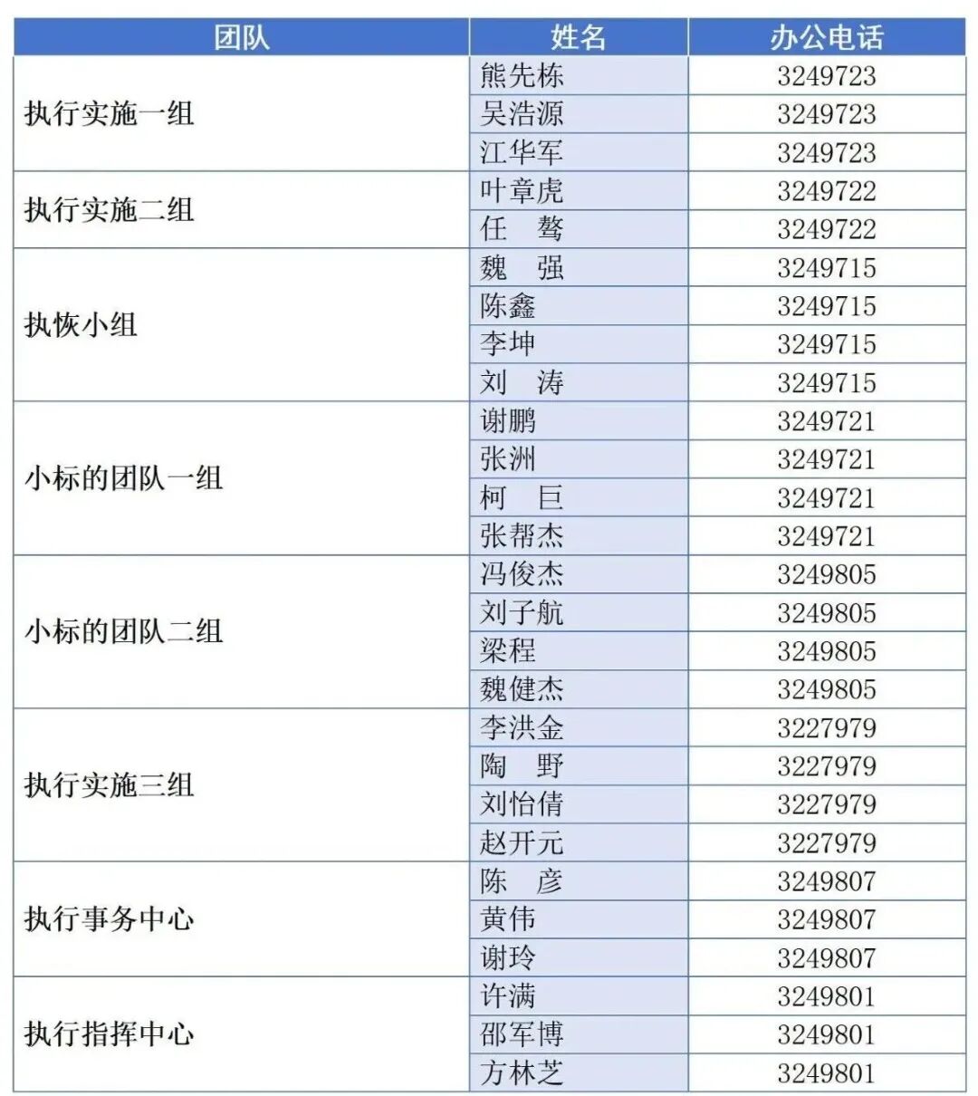 公布执行办案人员电话号码