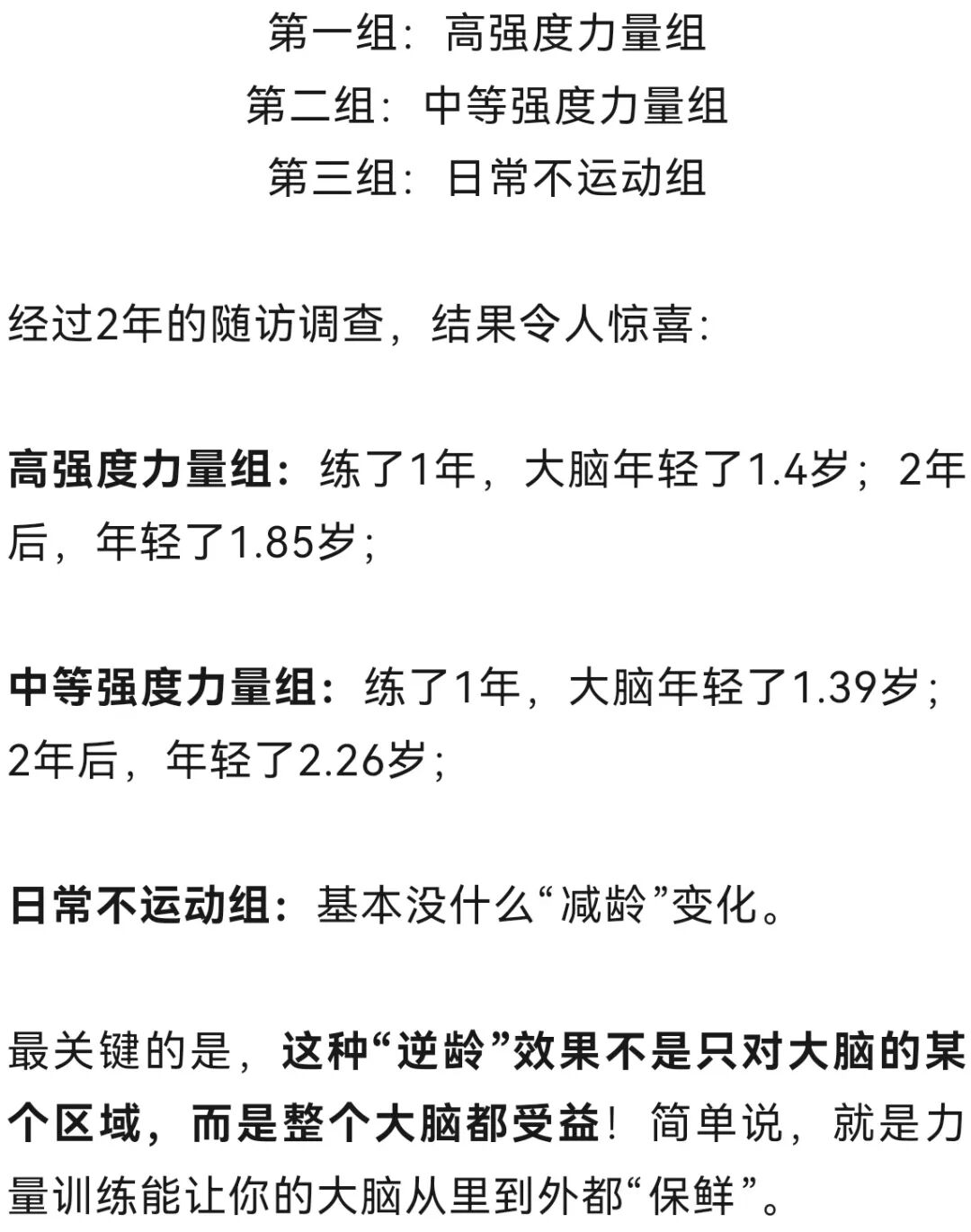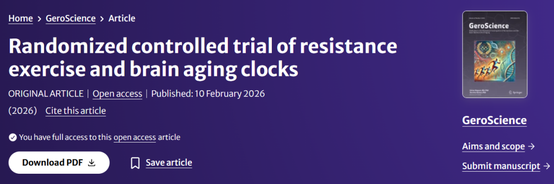 2026年2月,国际期刊《老年科学》(GeroScience)发表的一项研究显示,“抗阻运动”真的是对大脑有用的“逆龄运动”!实验发现,坚持抗阻运动一年后,大脑“年龄”可以年轻约2.3岁。那些没有进行抗阻力量锻炼的人,则没有这种“逆龄”效果。①