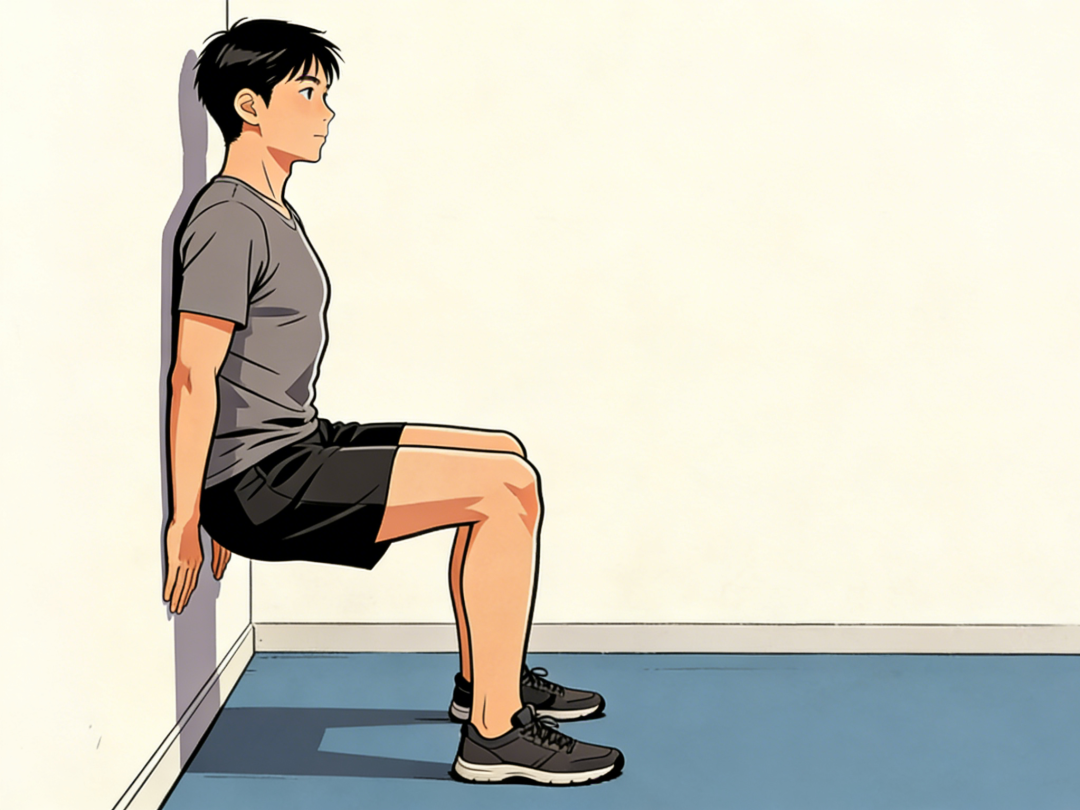 双手抬起与肩同宽,指尖触墙后,手掌平放在墙上。弯曲手肘,直到前额轻触墙面。训练时注意收腹、沉肩,保证身体成一条直线。