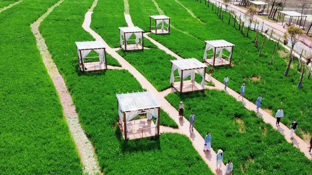 在春意盎然的田野间,“T台”蜿蜒延伸,成为最具烟火气的时尚秀场。走秀队伍中,老年人精神矍铄、步伐从容,尽显岁月沉淀的优雅与从容;小模特们稚气满满,童真的模样引得现场游客连连称赞,快门声此起彼伏。陕西游客程上航说,去年秋天来的时候,是漫山花海。今天又看到了春季麦田,麦场走秀。每次来都有不一样的惊喜,非常高兴。