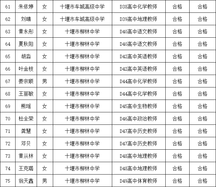 根据《十堰市教育局直属高中2026年公开招聘教师公告》和事业单位公开招聘有关文件规定,经报名、考试、体检和考察,现将陈柬宇等75名拟聘用人员名单予以公示。