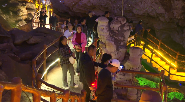 4月6日,清明假期最后一天,景区人气依旧不减。洞内五彩灯光与形态各异的钟乳石、石笋、石柱交相辉映,构成一幅幅浑然天成的壮丽画卷,让游客目不暇接。外地游客王先生说,驱车千里专程到这来,一看确实是不虚此行,各种钟乳石景点都是惟妙惟肖,感觉这个地方确实是独具一格的,非常有特色,值得全国各地朋友来此一游。