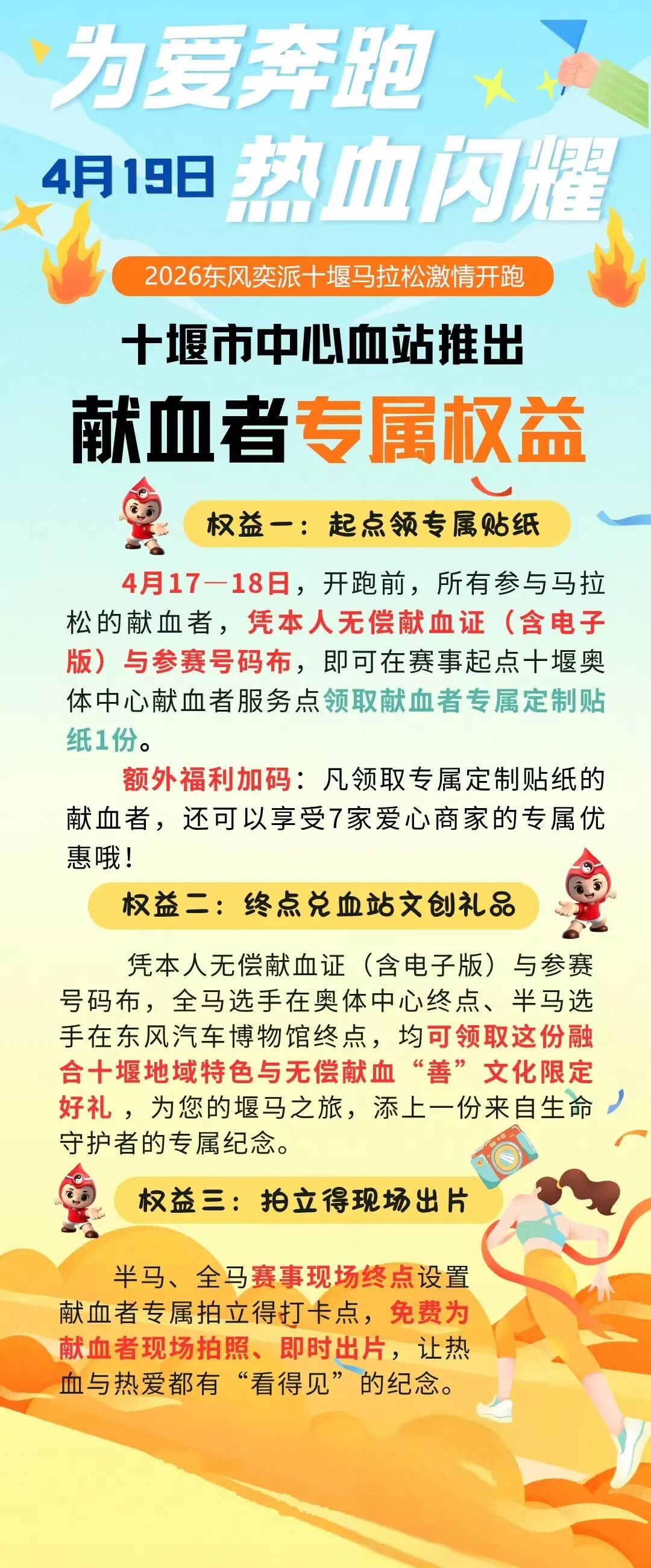 全马奥体中心终点、半马东风汽车博物馆终点(专属贴纸赛前在十堰奥体中心起点献血者服务点领取)