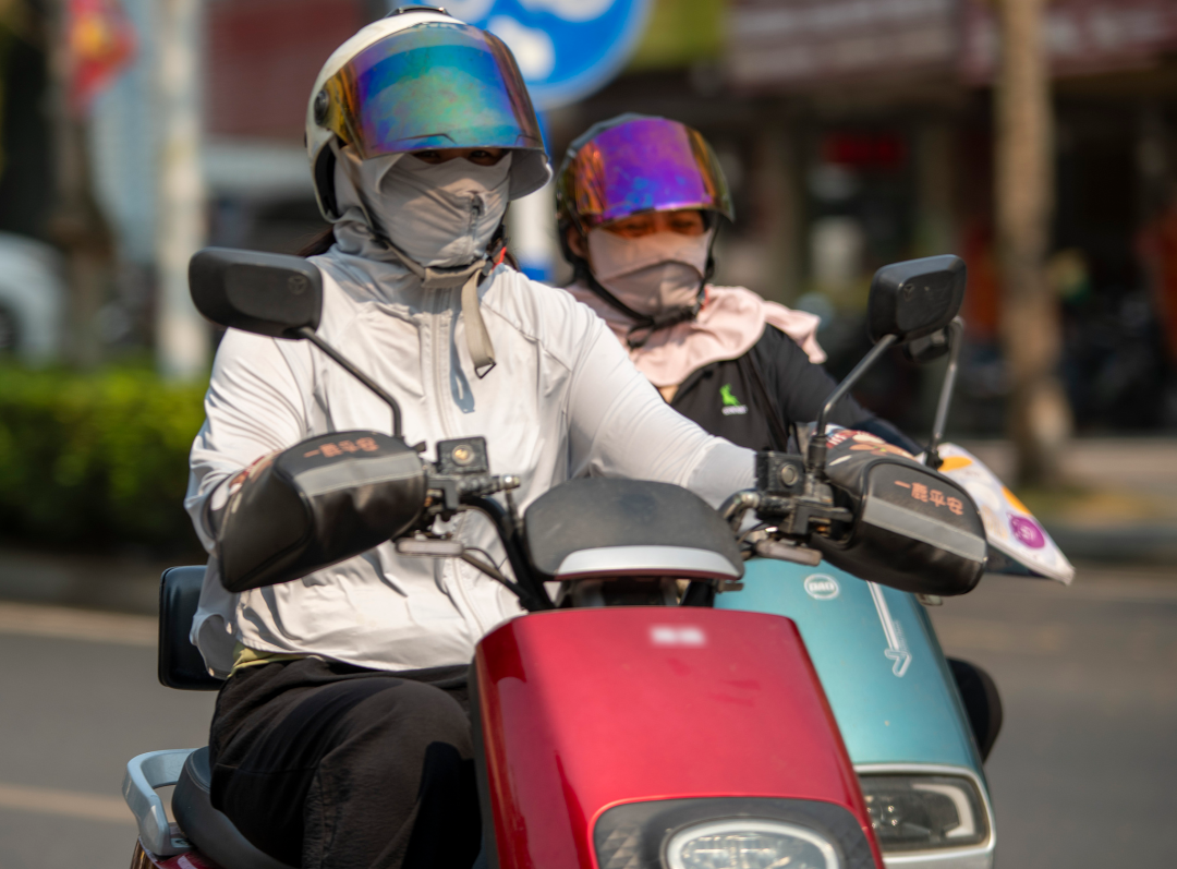 △近日,海南琼海市民“全副武装”应对高温