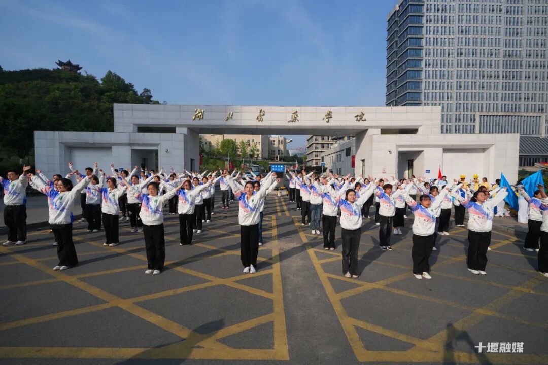 湖北医药学院门口,活力的舞蹈为选手加油鼓劲。
