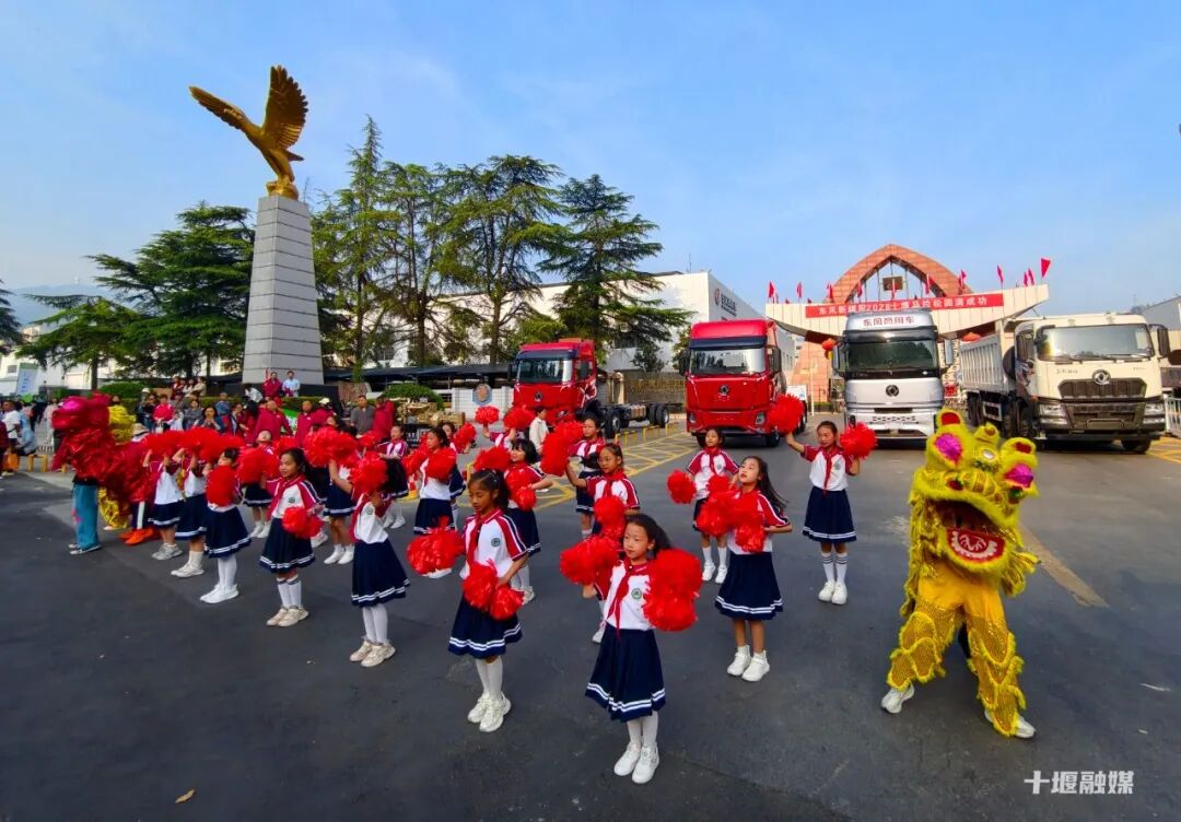 东风商用车新疆有限公司门口,东风43小学学生为大家加油。