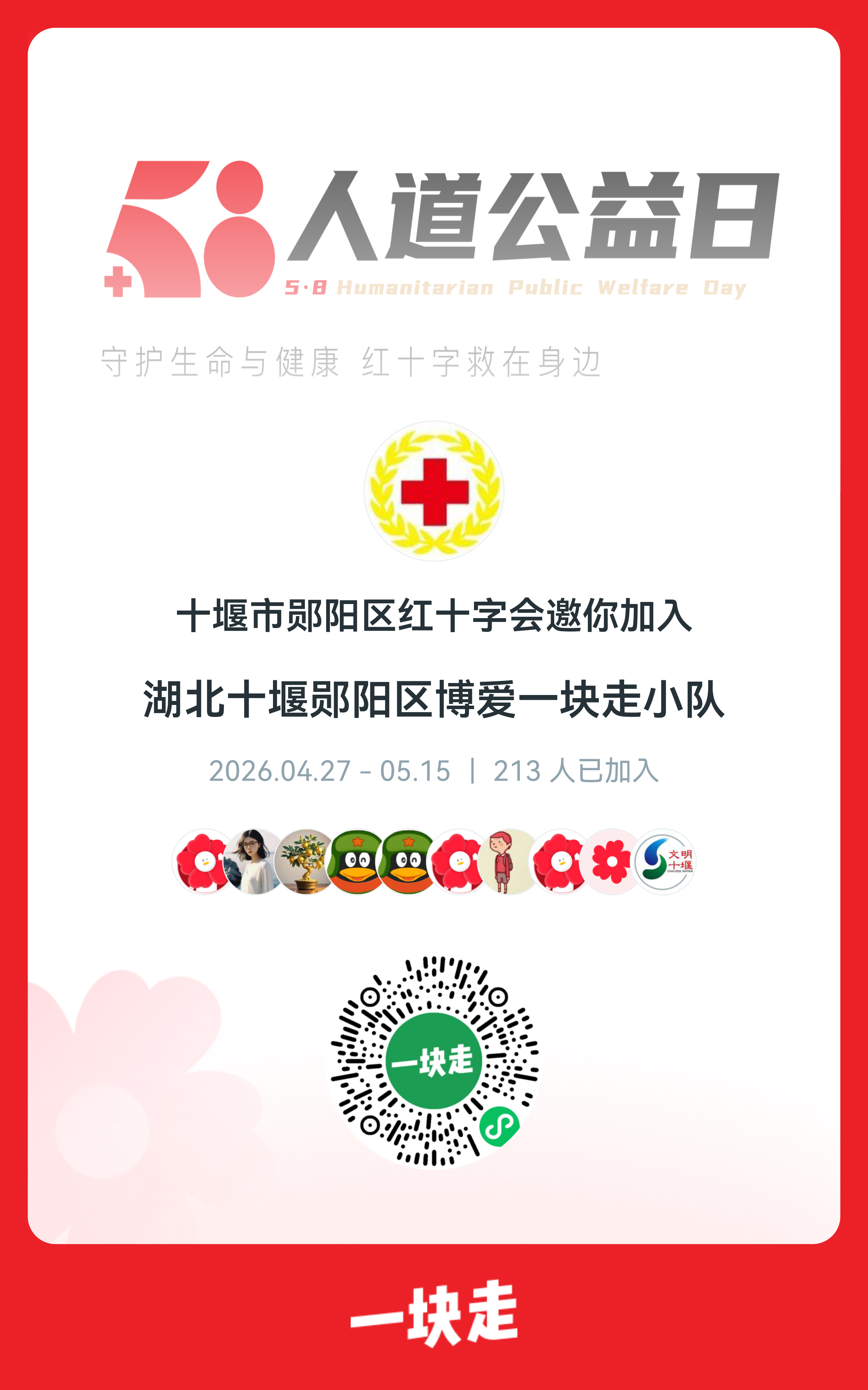 2026年“5·8人道公益日”一块走捐步公益活动于4月27日起正式启动!诚邀全区各机关企事业单位职工、爱心团队及社会公众,一起用行走传递温暖,用步数助力人道,让人人可公益、时时可公益、处处可公益蔚然成风!